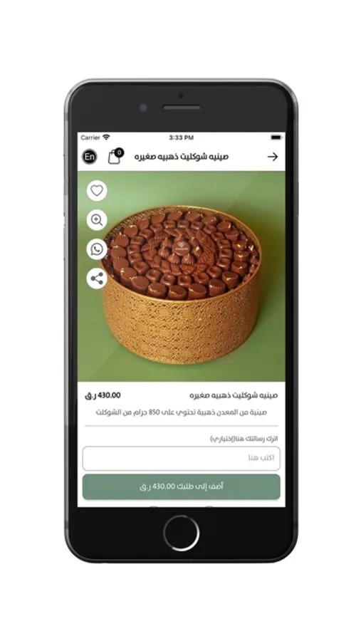 تطبيق Passion Flowers and Chocolate هو الخيار الأنسب حيث يمكنك العثور على ما يلبي شغفك من التنسيقات المنوعة من الورود والشوكلاتة. الواجهة المباشرة تجعل التنقل سلسًا ، كل ما عليك فعله هو فتح التطبيق والبحث عن التنسيقة المناسبة لك ، ثم إضافتها إلى عربة التسوق الخاصة بك ، وبعد ذلك اختر كيفية استلام طلبك عبر التسليم في أسرع وقت ممكن أو عن طريق الاستلام.