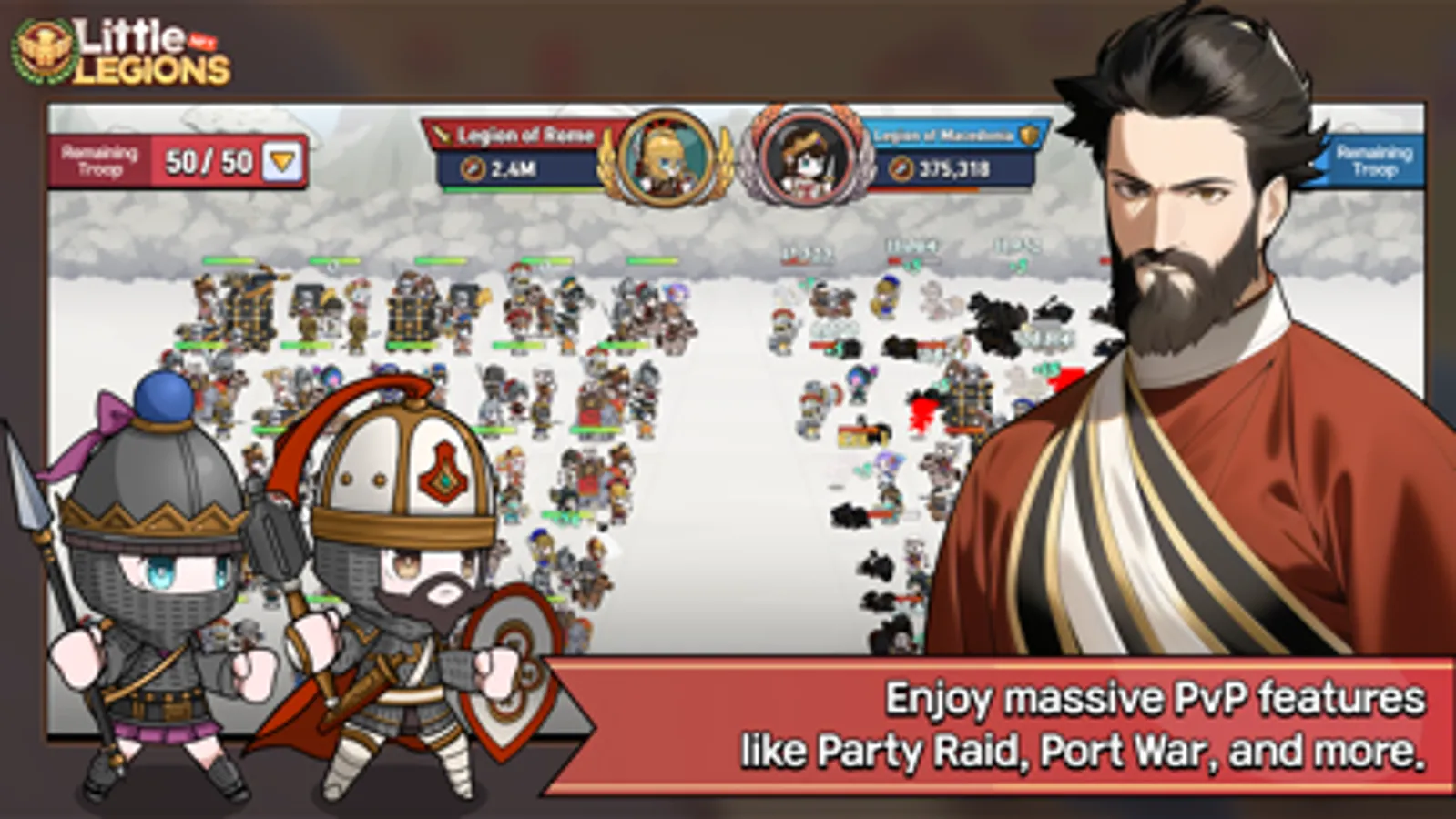Little Legions is a strategy game that requires tactics, including changing battle formations and patterns.