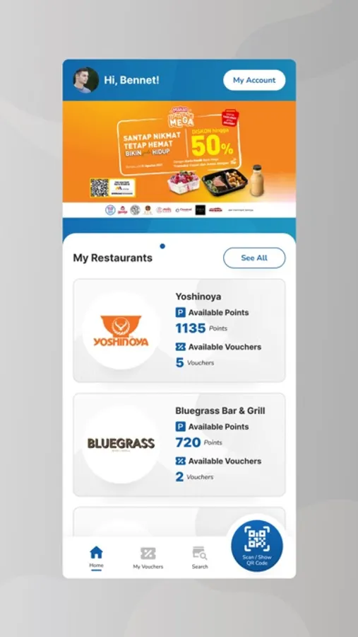 EASY TRANSACTION. Just scan QR code at our restaurant partner or show your QR code to cashier and automatically earn points or vouchers to your account.