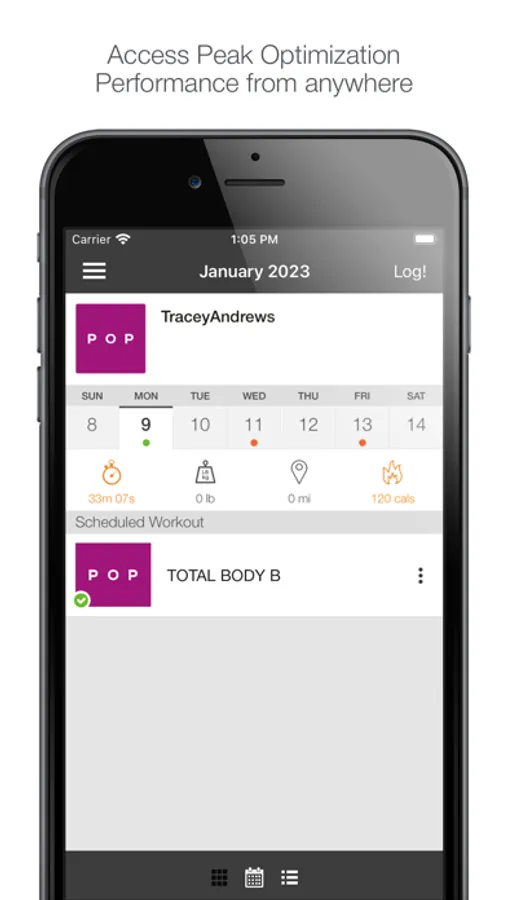 Log your POP workouts and nutrition plan from anywhere with the Peak Optimization Performance app! View your logged workouts and see upcoming scheduled workouts inside the app. Track and monitor your personalized nutrition plan and see your progress all in one place!
