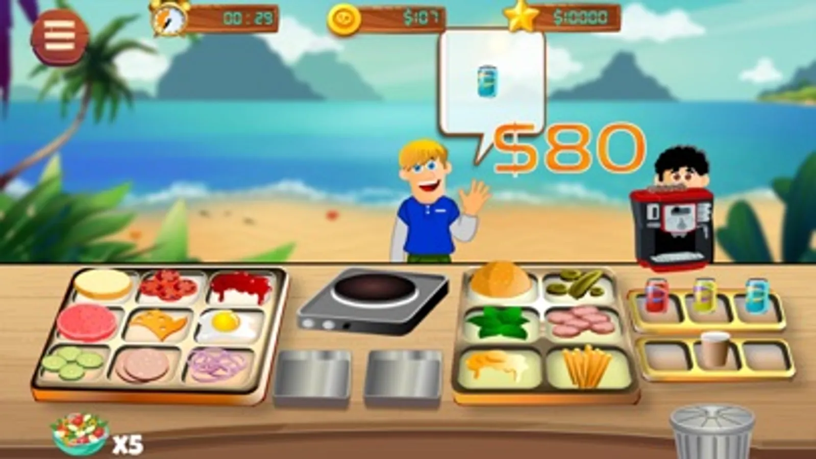 - Catch falling ingredients to earn coins