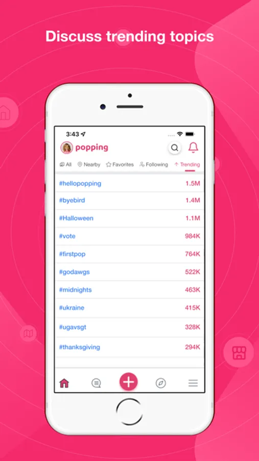 Tailor your feed. Popping lets you tailor your content to what matters to you. From the home screen you can check out what’s happening nearby, keep track of your favorite places, see what’s popping with those you follow, and view what’s trending everywhere.
