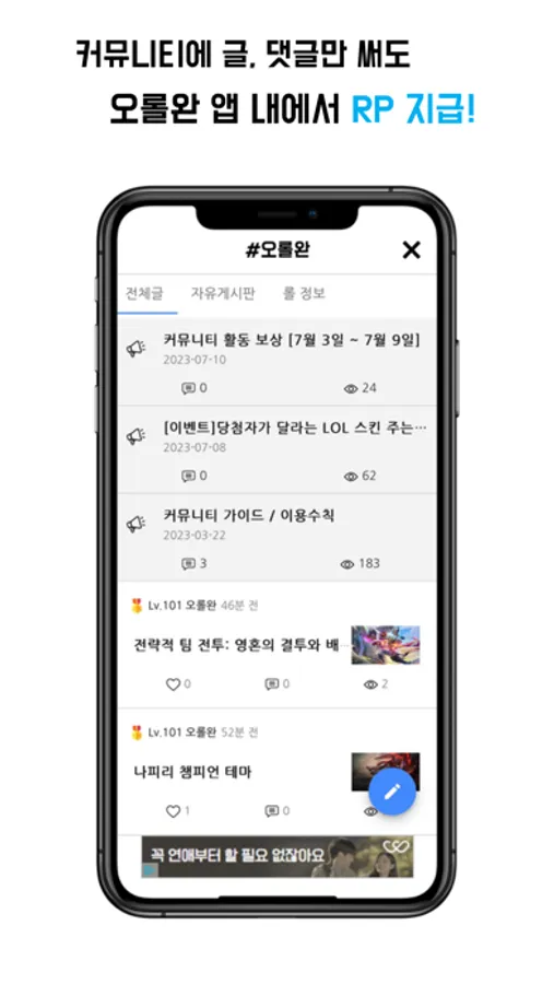 리그오브레전드 최초 보상형 커뮤니티 오롤완!