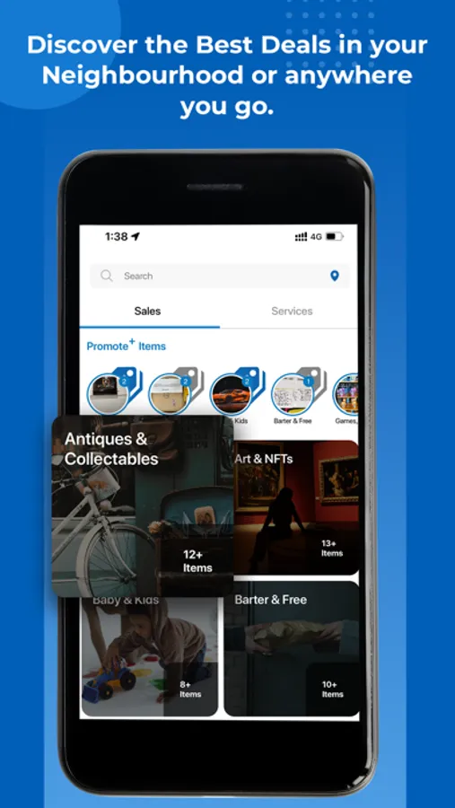 Huge variety of items on sale: Buy/sell NFTs, art, antiques, kids’ toys, business equipment, and vehicles, just to name a few