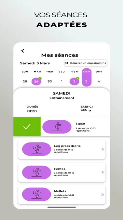- Tu choisis le nombre de séances que tu fais chaque semaine.