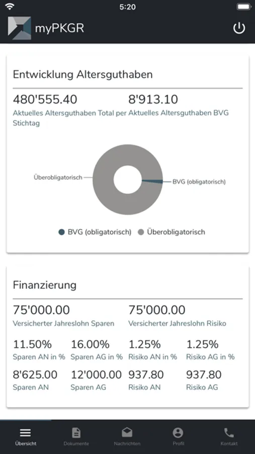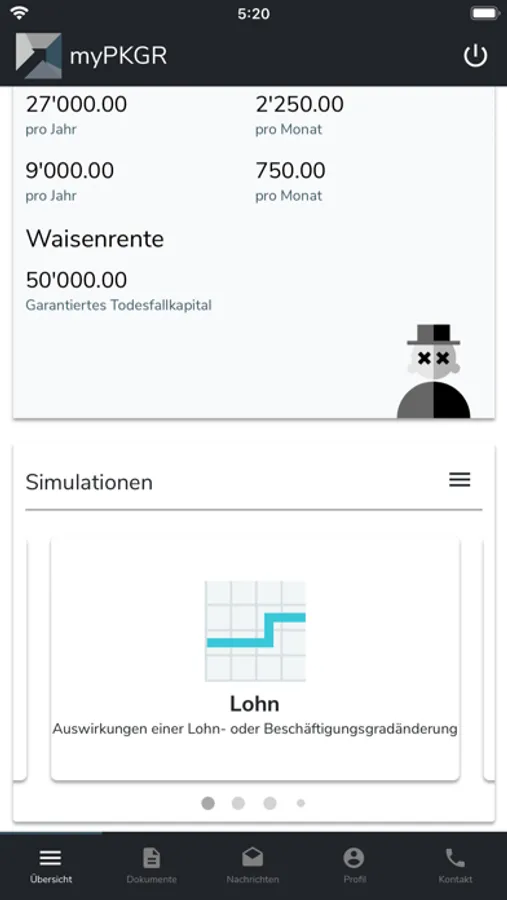 Mit der App myPKGR können Sie jederzeit Ihre aktuellen persönlichen Pensionskassen-Daten abrufen, eigene Simulationen durchführen und Ihre Leistungsveränderungen ersehen. Die Versicherten-App erleichtert Ihnen die Vorsorgeplanung. Der Aktivierungscode für das erstmalige Login ist auf Ihrem Vorsorgeausweis ersichtlich.