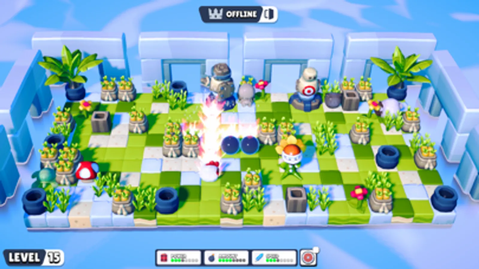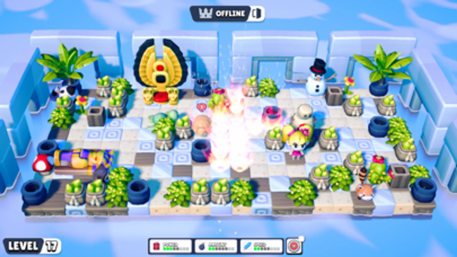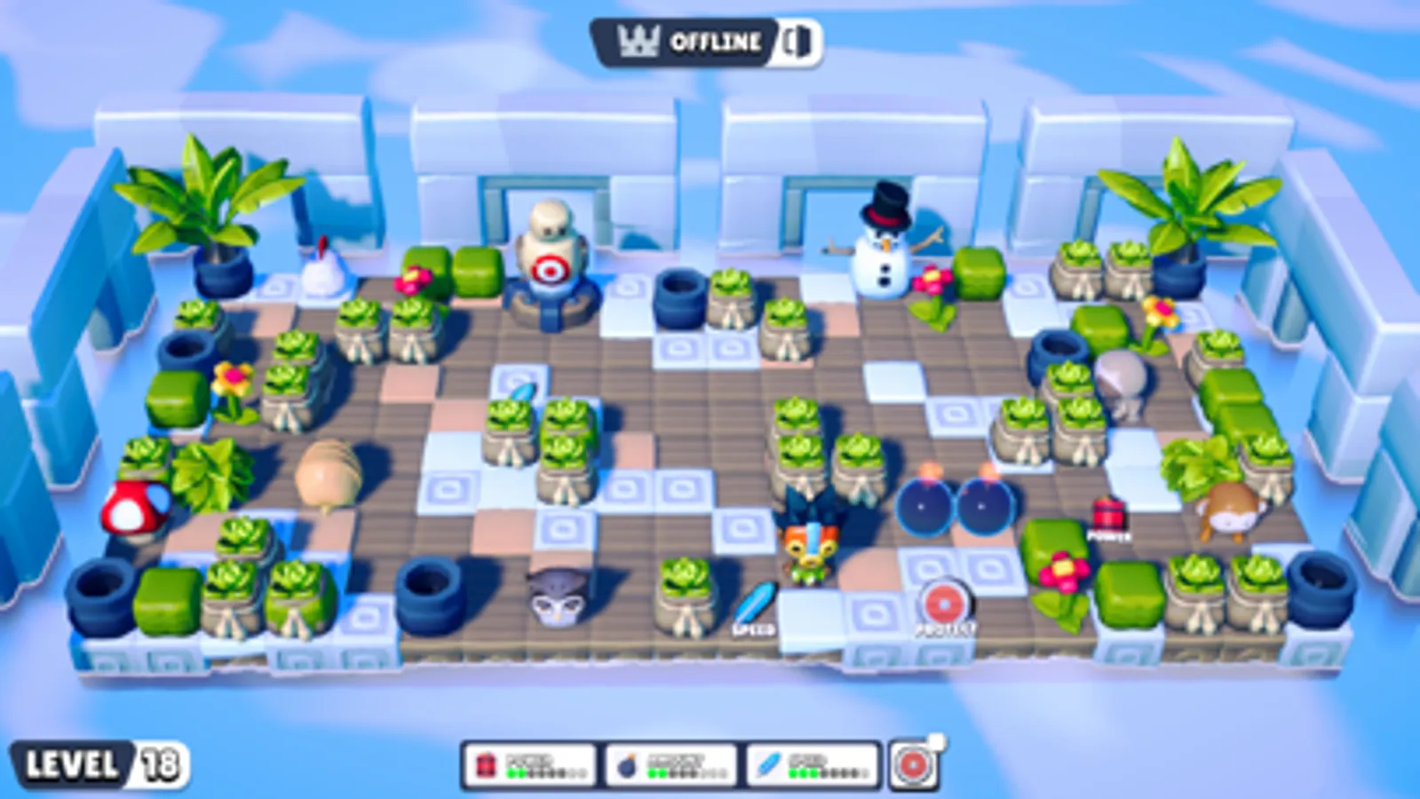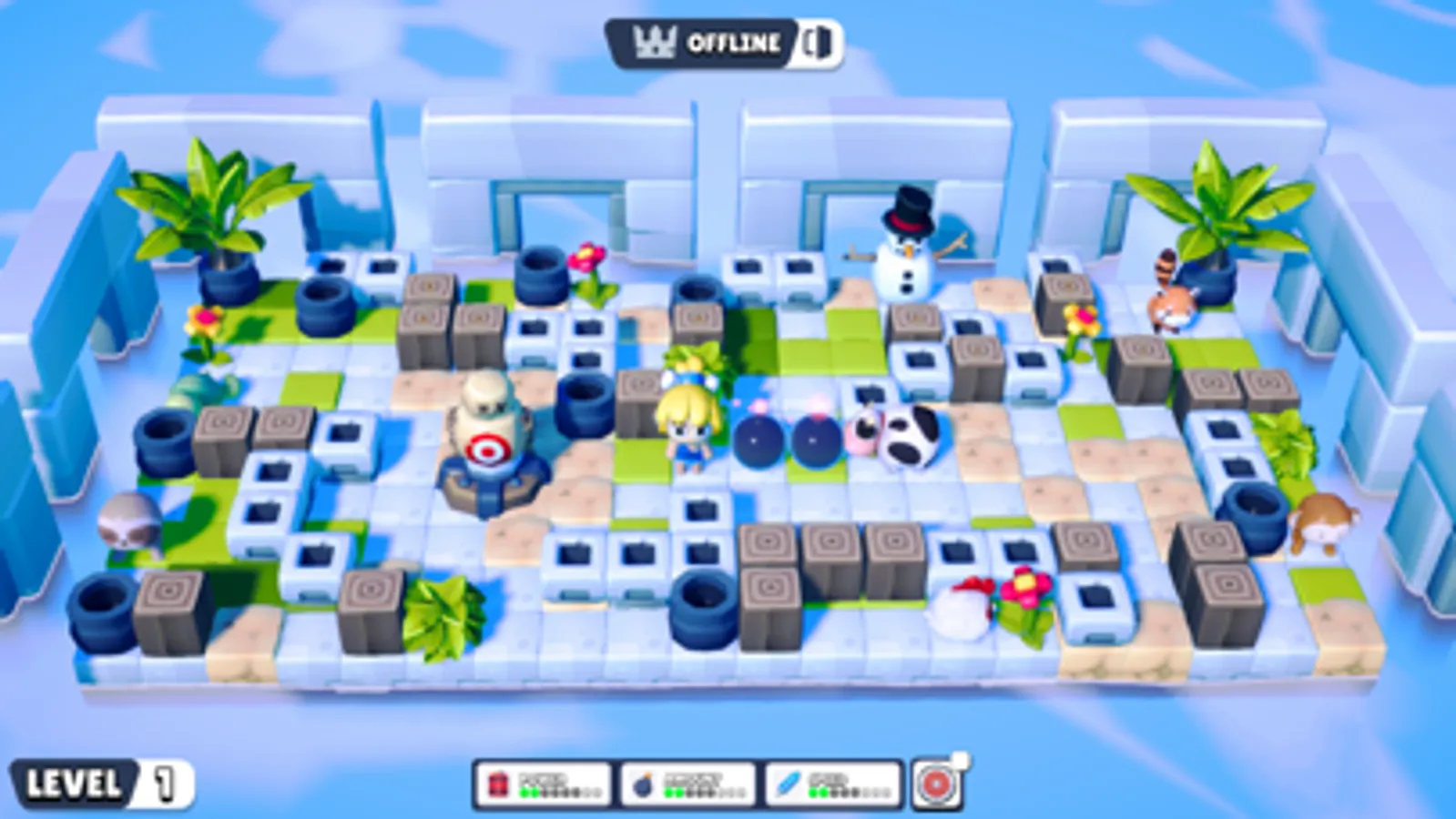 If you like classic bomb games and love cute characters, so Classic Bomber Online is game for you. The game is very simple, you will move and place bombs everywhere to catch the animals. When all the animals are caught by you, you are the winner. However, the animals are not as easy as you think, they will probably run very fast and find a way to crash straight into you. You need to strategically place bombs to catch all the animals. Just be not careful, the loser will be you. You can also compete with others through Online mode, whoever finishes first will be the winner. Good luck and have fun!