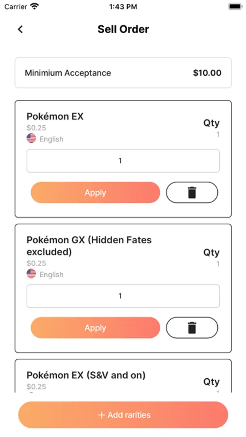 If you're a buyer, you don't have to navigate through individual listings. Instead, you set your purchasing rates for different grades and categories of cards and wait for sellers to send you their bulk according to your preferences. It's an entirely new and streamlined way of expanding your collection or business inventory.