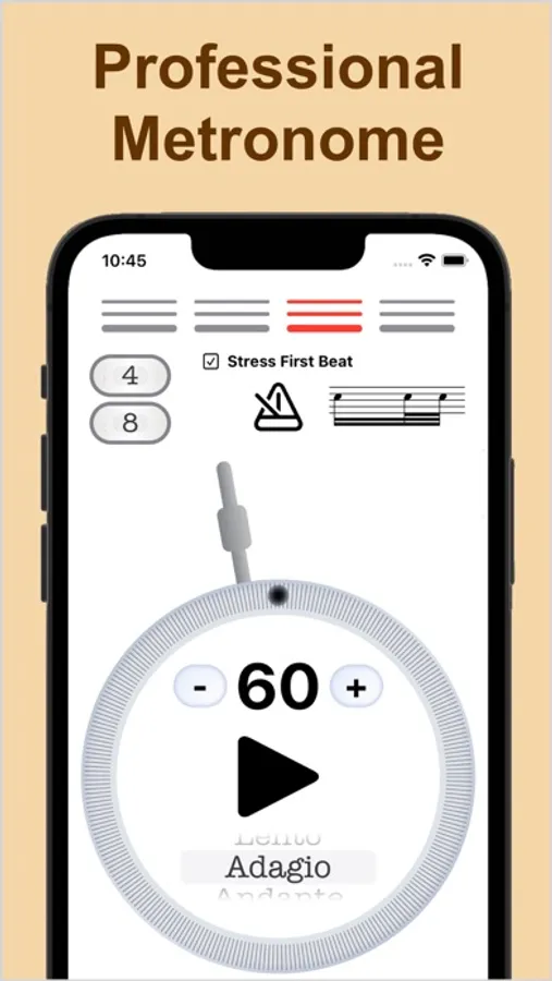 We put our metronome with all its professional features: beats up to 240 bpm, subdivisions.