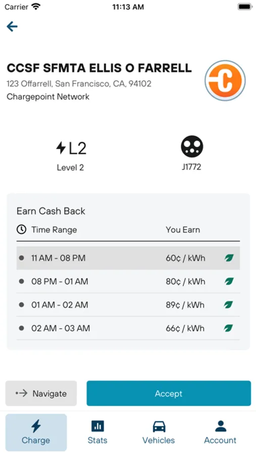 With Powerline you don't have to worry about finding a nearby charging station with the right connector type. We find the right stations for you, send you rebate offers to charge at these stations at certain times, and pay you based on what you charged.