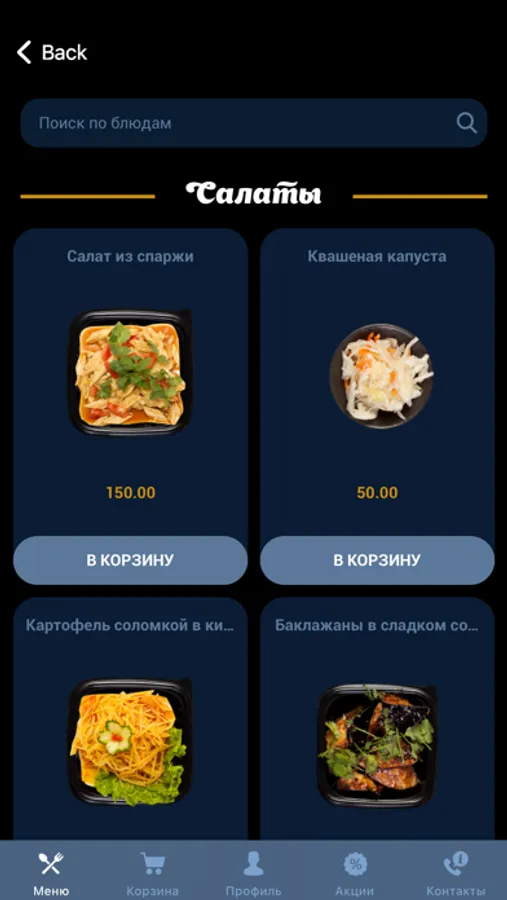 -иллюстрированное и актуальное меню в приложении