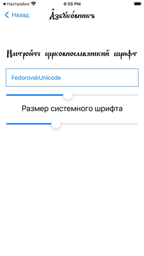 Приложение разработано с использованием шрифтов и словаря, представленных на 1-е сентября 2022 года на интернет-ресурсе https://sci.ponomar.net под лицензиями SIL OFL и MIT.