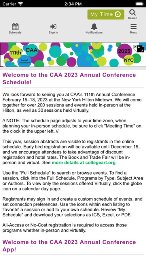 The CAA 2023 Annual Conference will be held February 15th - 18th, 2023, in New York, NY, and virtually. Login to view Sessions and Papers saved as favorites. View schedules, locations, floor plans, and people. Attendees will now be able to facilitate their attendance at the meeting using the mobile app.