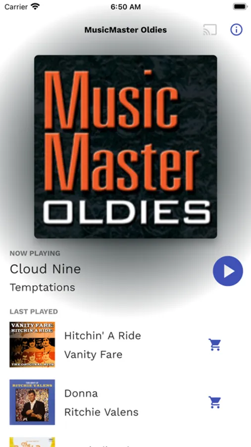 This mobile application plays the live stream of MusicMaster Oldies - The biggest hits of the late 1950's to the early 1970's.