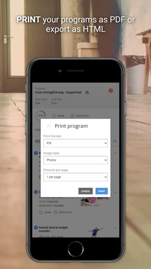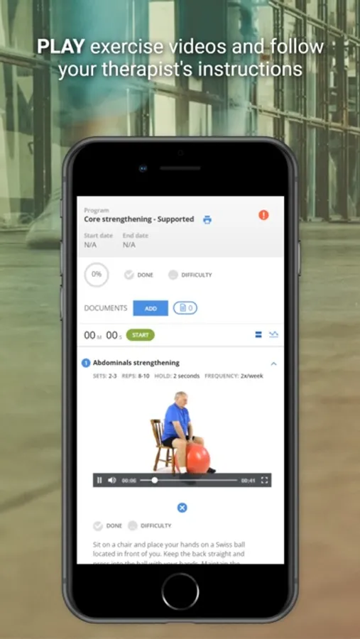 The app provides you with high quality HD videos of your rehab exercises prescribed by your physician, physiotherapist or other healthcare professional. All exercises have been filmed using a best practice educational video production process. That means no more guessing if your technique is correct, because you can perform the exercises along with our professionally trained models.