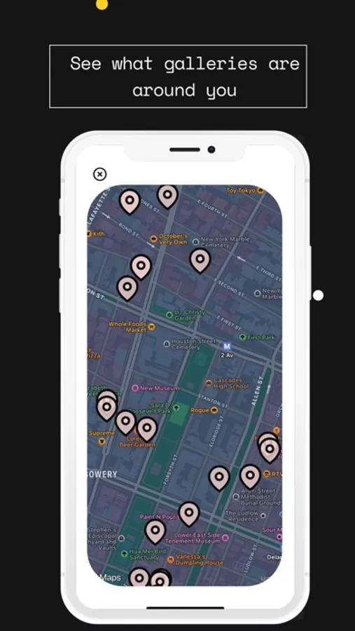 * Discover and explore the vibrant art scene in your area with our easy-to-use location-based map feature.