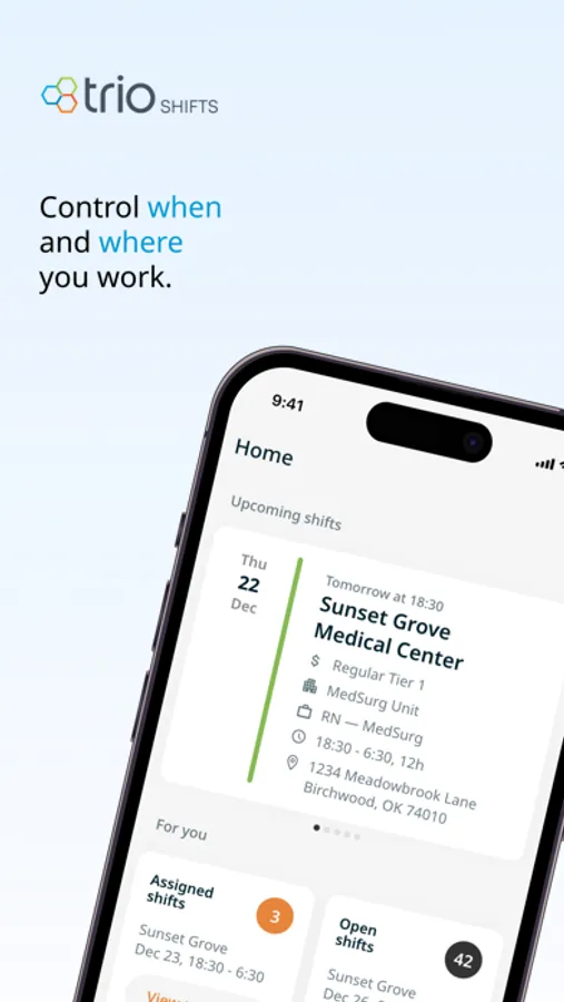 Trio was built specifically for healthcare and gives you access to thousands of shifts across a wide range of specialties in Nursing, Allied, and Locums.