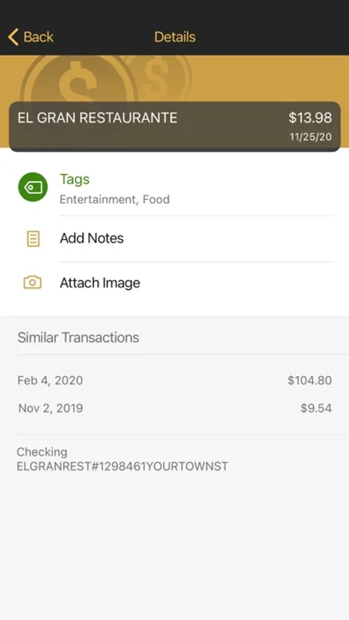 • Keep your transactions organized by allowing you to add tags, notes and photos of receipts and checks.