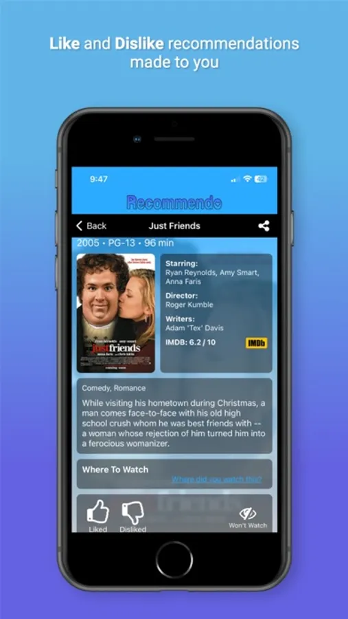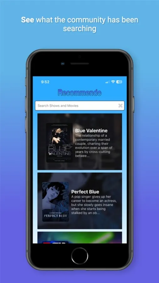 By liking and disliking the recommendations you receive, the app figures out who knows you best, and presents their recommendations to you first. Always have a list of shows to watch next right at your fingertips.
