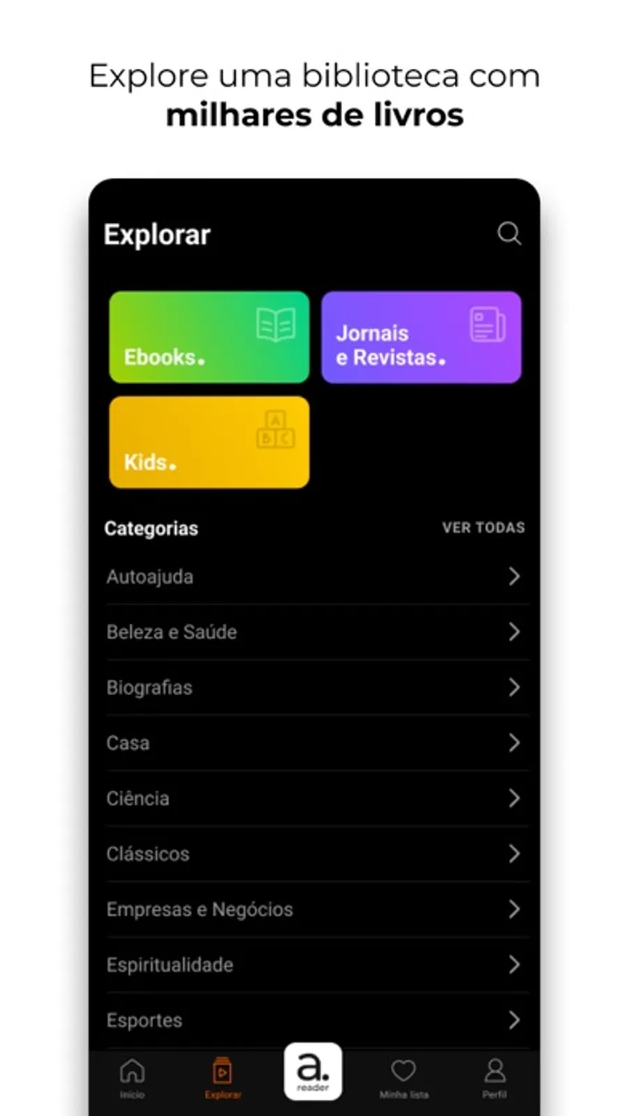 Increase your book reading average with the convenience of being able to read wherever and whenever you want. With your new digital library, you will be able to access a catalog with more than 10 thousand ebooks from the most diverse categories: Fiction, Classics, Self-Help, Novels, Biographies, Business and much more.