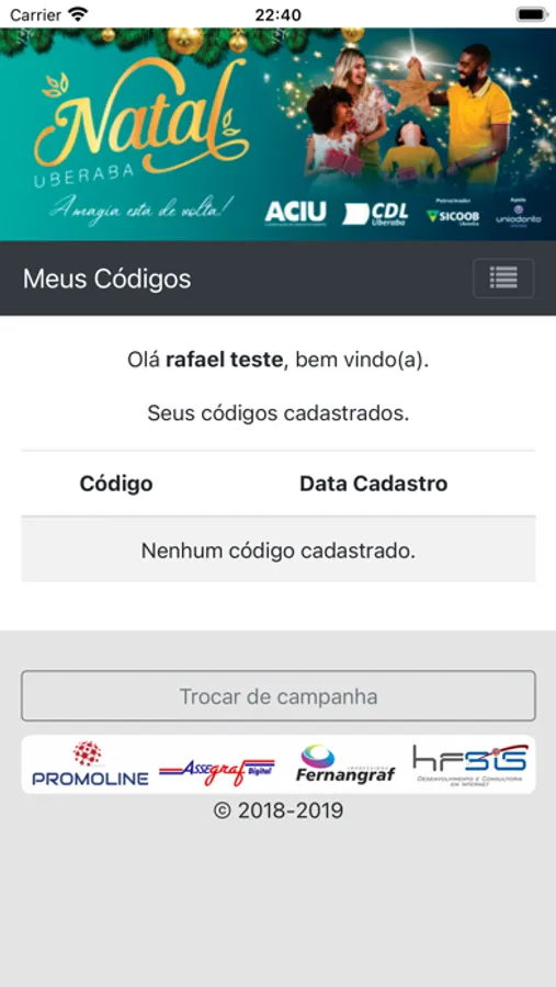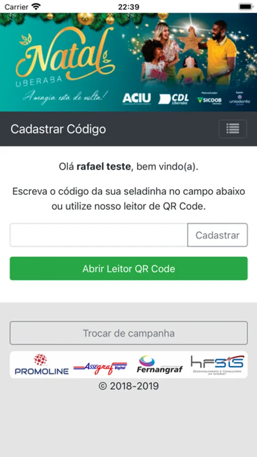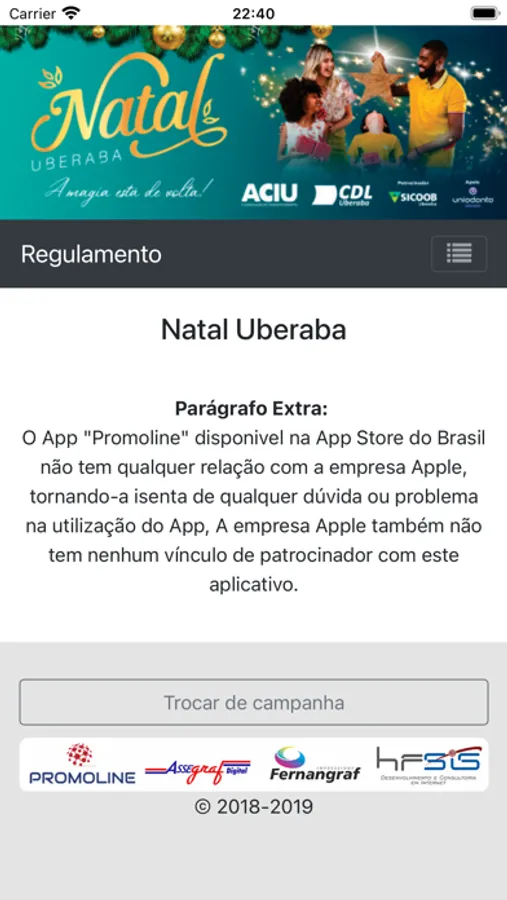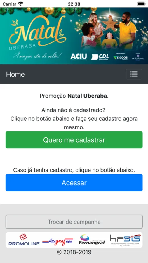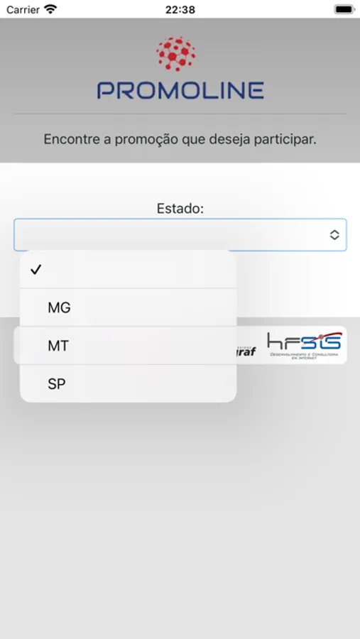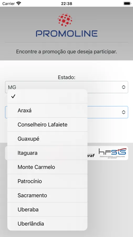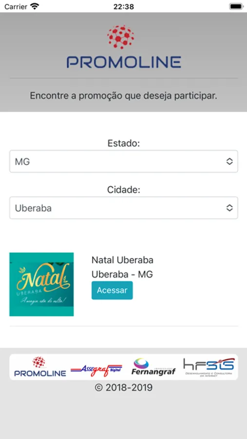 Aplicativo para cadastro e participação nas campanhas promocionais da Promoline.