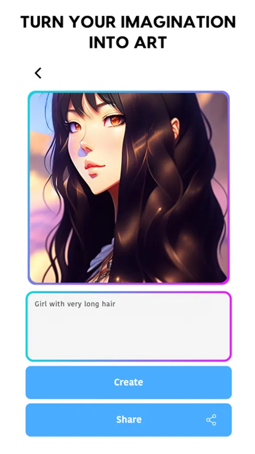 Anime AI Art Generator app uses Ai to generate unique anime-style artwork. Simply enter a prompt or pick your favorite picture from your gallery and our AI-powered engine will create a one-of-a-kind anime avatar for you in seconds!