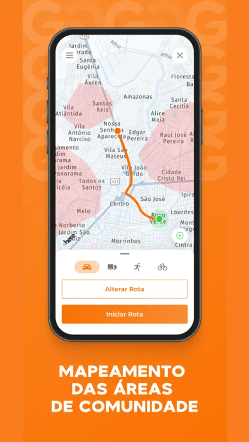 Desvio de áreas de comunidades, alerta visual e sonoro de proximidade de áreas.