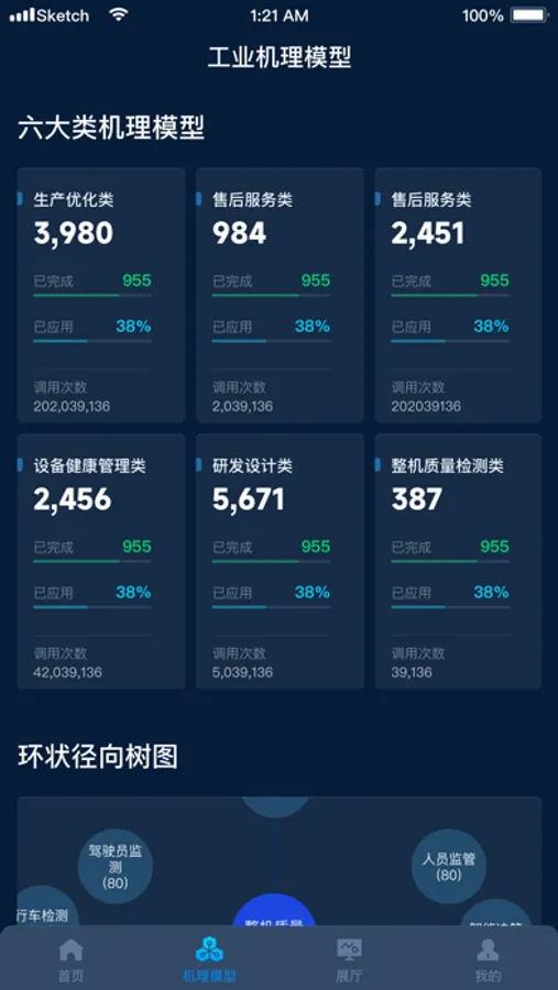 基于工业大数据服务平台,汇集工业数据可视化指标,实时检测工业数据及工业机理模型使用现状,提供多维度,多指标的交叉分析能力,为工业领域企业的日常数据需求分析、业务决策提供数据支撑。同时融合网上展厅系统,促进数据协同、加强服务体验和组织竞争力