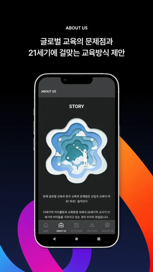전 세계의 10대와 20대의 생각과 스토리 데이터들을 가치 있는 정보로 전환하여, 모든 아이들이 함께 공유하면서 21세기 산업 생태계를 전부 바꾸어 놓을 수 있는 인재로 성장하도록 만든다.