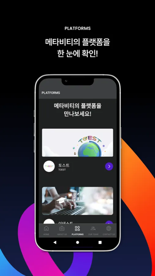 (주)메타비티는 TOEST, E-Test와 같은 교육 플랫폼이 있고 더더욱 늘려 나갈 예정입니다.