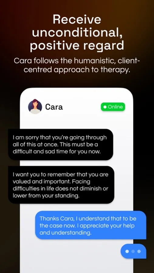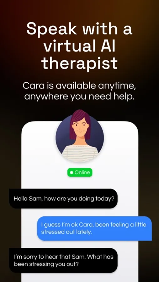Cara does not provide diagnosis or treatment. It does not replace a therapist, but it can provide pertinent support to take care of your emotional wellbeing and mental health. It may work effectively alongside therapy or other treatments (such as medication) if you are currently seeing a physician or therapist.
