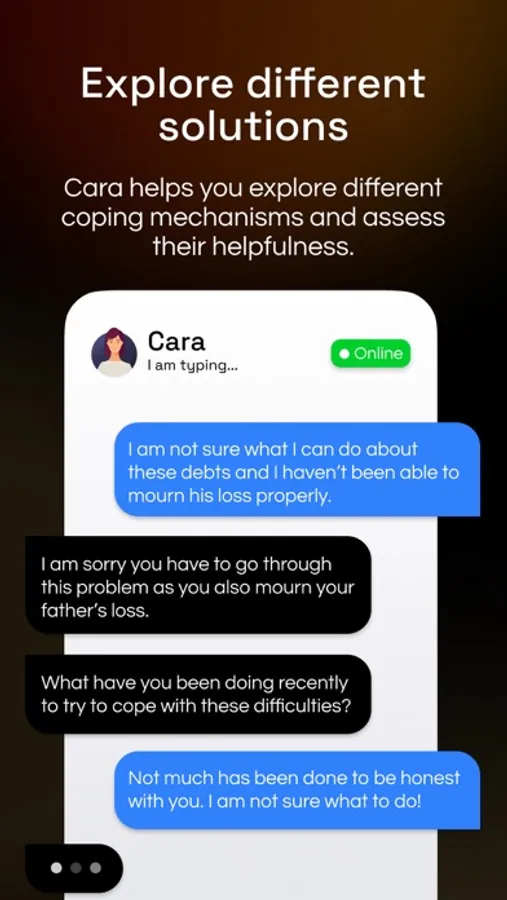 Download Cara now, and start chatting to help tackle your life's challenges and problem-solve with action plans.