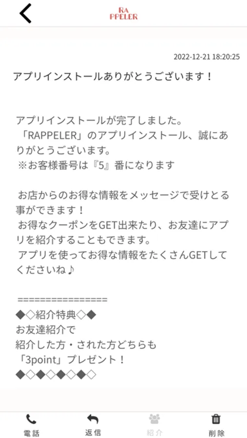 このアプリでは、RAPPELERの最新情報の受け取りや便利な機能を使う事ができます。
