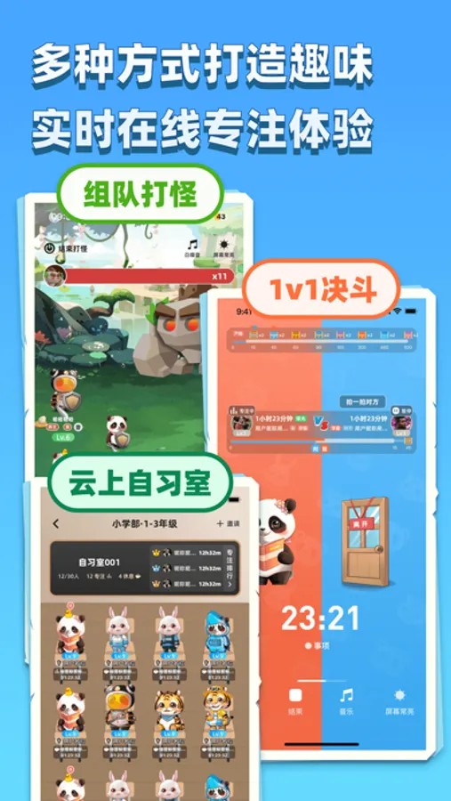 专注大作战希望让专注学习这件事更加有趣,让你能够更轻松的坚持下去。