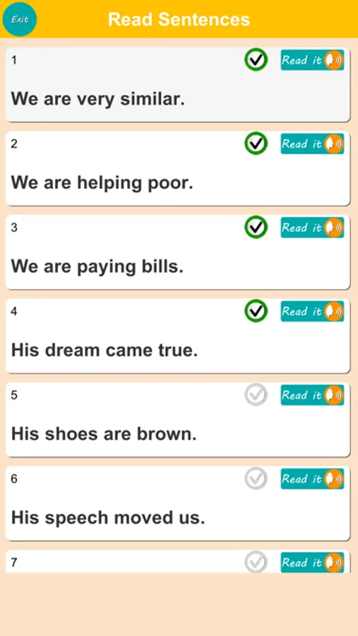 Sentence Listening: Dive into the world of auditory learning. Not only can you read sentences aloud, but you can also utilize the "Read it" feature to learn proper pronunciation. This invaluable tool ensures that your spoken English matches your written skills.