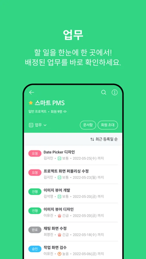 배정된 업무를 한눈에 한 곳에서 확인하고 업무 관리를 꼼꼼하게 할 수 있습니다.