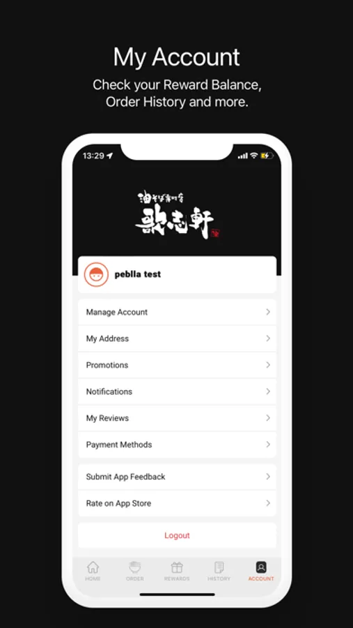 Check your Reward Balance, Order History and more.