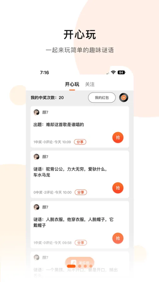 可信APP可以参与开心玩等猜谜趣味活动,可根据用户定位获取当前位置所在城市查看其他用户的生活记录或者兴趣短视频,同时为用户提供方便快捷的商城服务体验