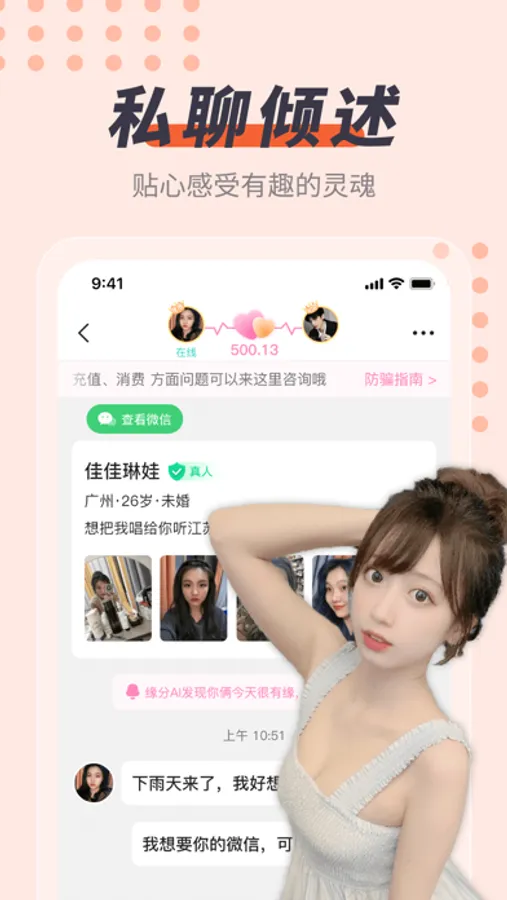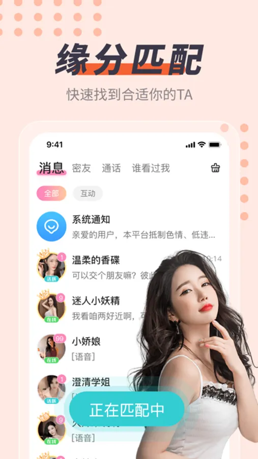 默默探寻有趣的灵魂伴侣,随时随地和高颜值Ta邂逅聊天。