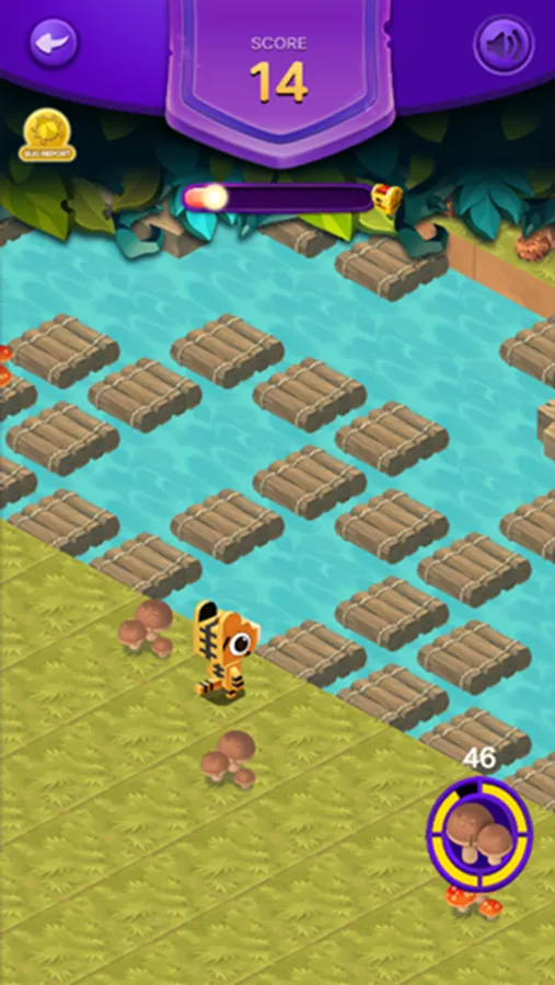 Be careful not to fall into the river from the rolling rocks, and play while eating mushrooms as there is a time limit.