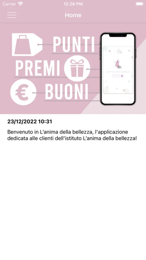 Applicazione dedicata alle clienti dell’istituto L’anima della Bellezza, grazie alla fidelity card ti darà la possibilità di accumulare punti, visualizzare i punti e il credito per trattamenti viso e corpo, usufruire di bonus, ricevere notifiche push con promozioni e rimanere aggiornata alle novità, visualizzare catalogo e richiesta premi e le promozioni “presenta un’amica”.