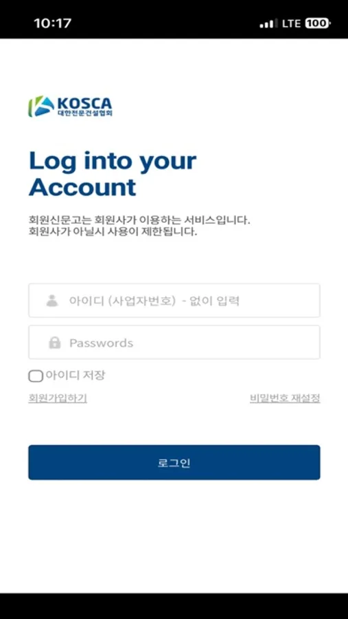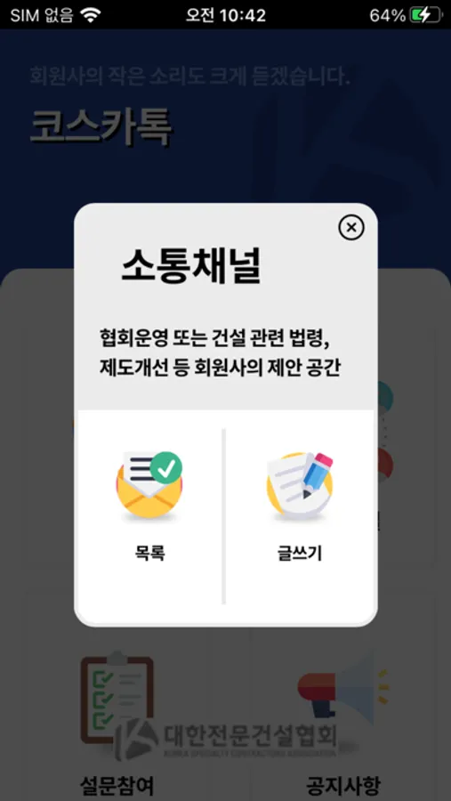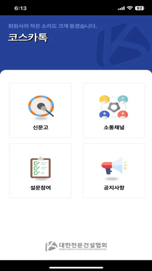 ※ 코스카톡 앱은 대한전문건설협회 정·준회원이 가입 가능합니다.