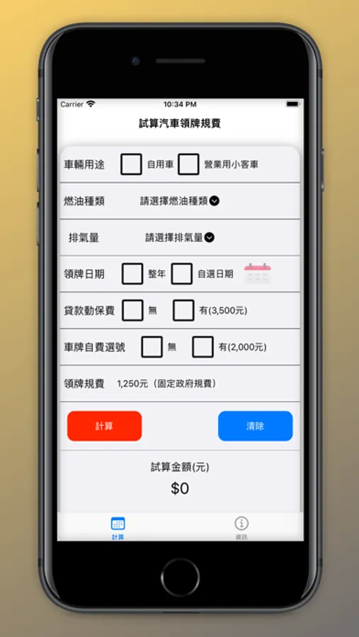 提供車商、個人計算汽車(自用小客車、營業用小客車)領牌規費計算,以便計算出該繳出多少費用,如找民間代辦業者著收費用均不相同,計算結果僅供參考。