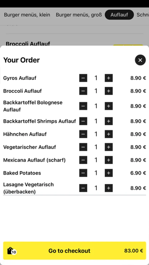 - Durchsuchen Sie die Speisekarte des Restaurants und sehen Sie sich alle anpassbaren Optionen im Voraus an