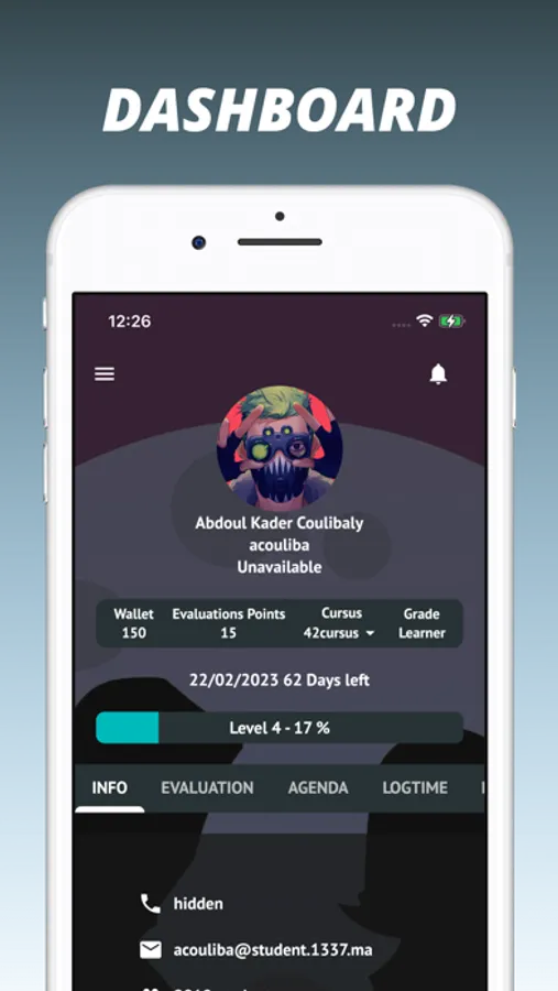 Intra 42 is a mobile app for School 42 students. It allows students to participate in online discussions and collaborate on projects, and offers helpful resources and tools to support their academic and professional development. Some of these features include a personalized dashboard and a cursus graph that tracks their progress through the school's program. The app also includes a "cluster" feature, which is an online map that shows all students currently present on campus, and a "blackhole" feature which organizes students by their expected graduation date. This allows students to connect with and learn from each other as they progress through the program. Additionally, the app keeps students updated on important events and announcements