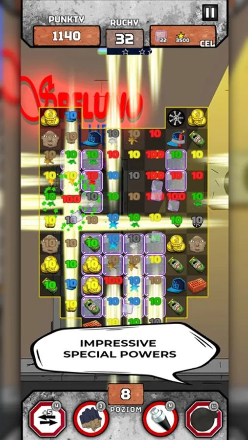 The game also features bonuses, such as bombs that destroy multiple blocks at once. Players can unlock new characters and levels by collecting points and achieving goals in the next stages of the game.