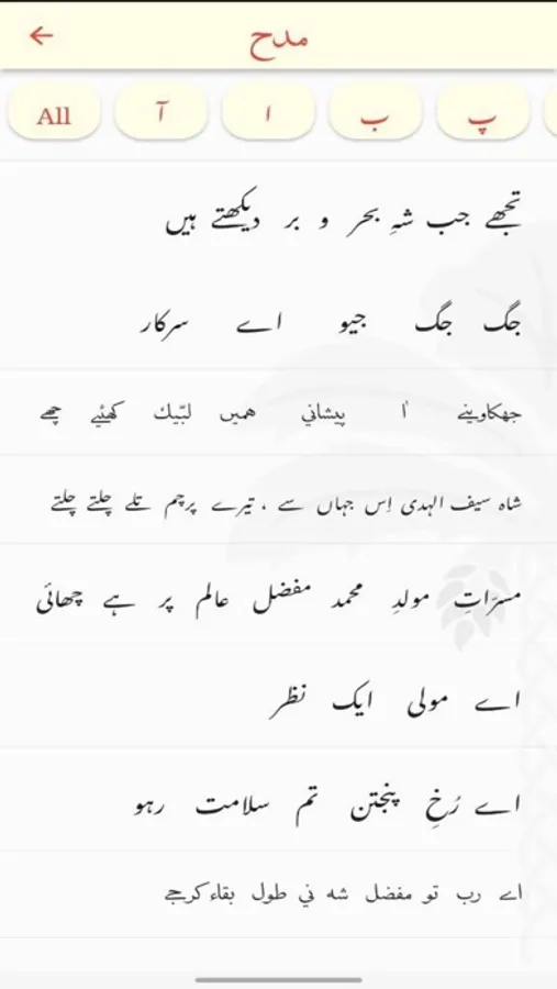 A specially curated list of Nasihat, Madeh, Salam, and Marasiyah is available in this app for easy reading.