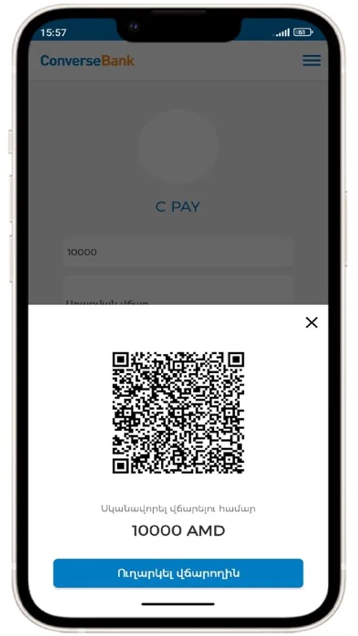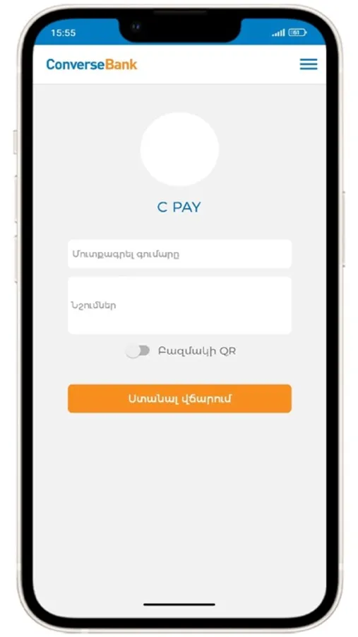 The Converse Pay application is designed to accept payments online and with QR codes. The application enables you to send a payment request to a customer located anywhere in the world, in preferred way, and receive payments with VISA, MasterCard, ArCа cards.