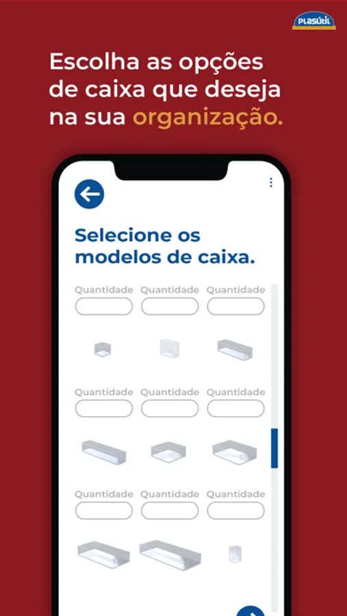 O aplicativo enCaixa ajuda a definir quantos e quais organizadores enCaixa Plasútil cabem no espaço a ser organizado.