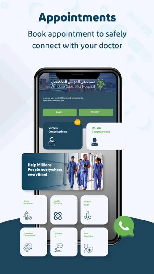 Almoosa Health Group App is designed for your convenience and comfort. As a leader in person-centered care, we continue to offer patients and their families an exceptional patient experience starting from pre-hospital to arrival; including booking and registration or using the latest technologies such as virtual consultations or online payment.